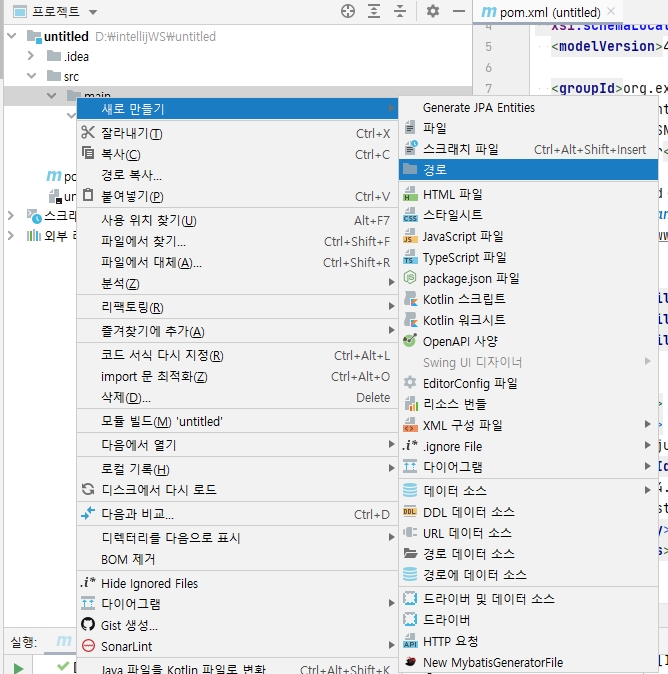 자바와 리소스 경로를 선택하여 만들 수 있게 해 준다