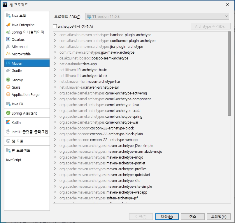 그후 다음을 눌러 프로젝트 생성해주면 끝!