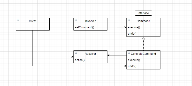 ConcreteCommand는 특정 행동과 리시버 사이를 연결하여 줍니다 인보커에서 execute() 호출을 통해 요청을 하면 ConcreteCommand 객체에서 리시버에 있는 메서드를 호출함으로써 작업을 처리합니다(리시버와 커맨드 객체를 이어주는 역할)